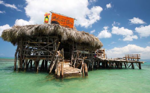 This floating bar in the Caribbean sea is lo...